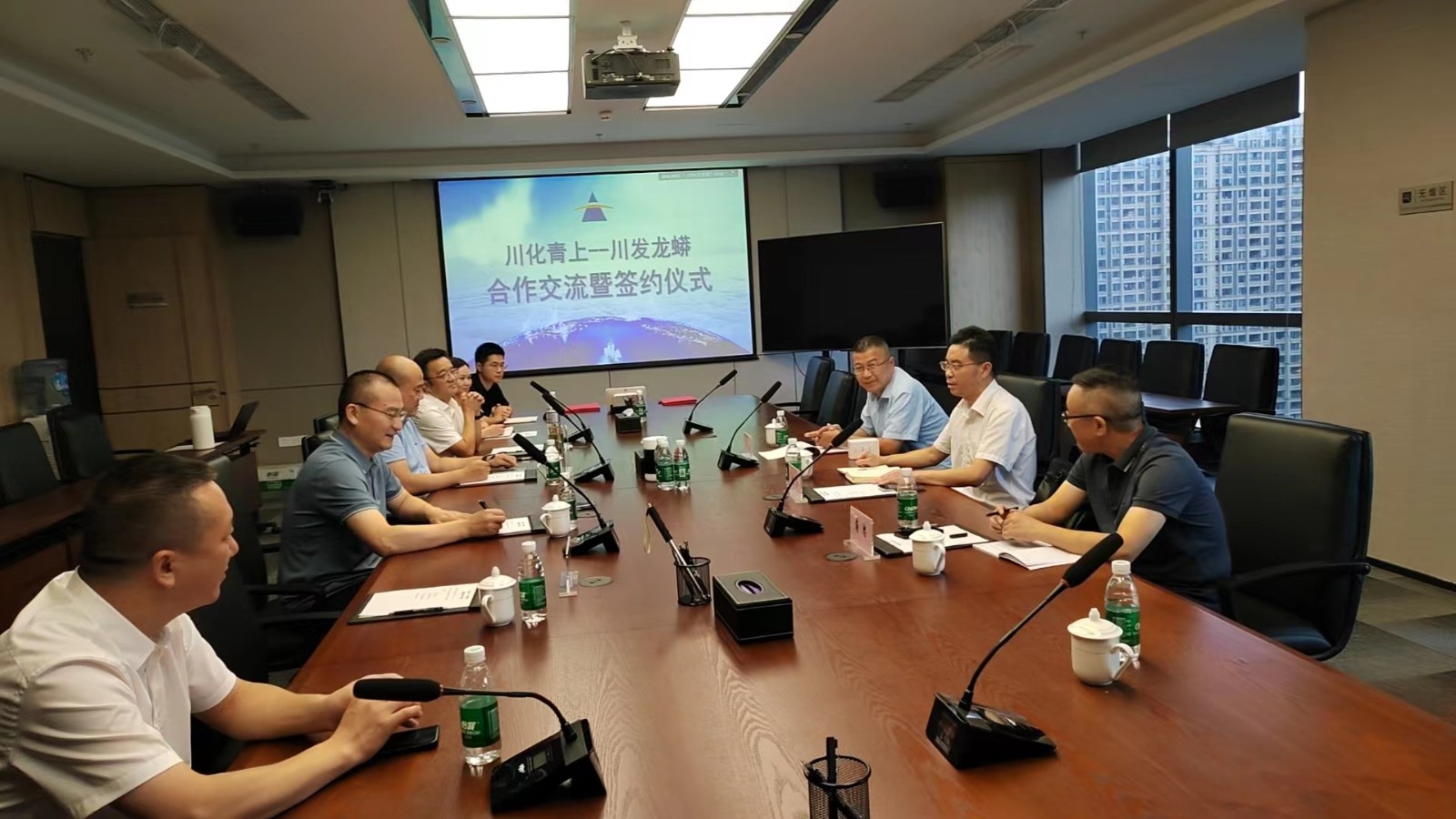 川发龙蟒公司经营中心总经理张世银、经营中心总经理助理陈庚、经营中心供应部部长曹军成及相关业务经理,川化青上公司经营部副部长蒋忠及相关人员参与交流。
